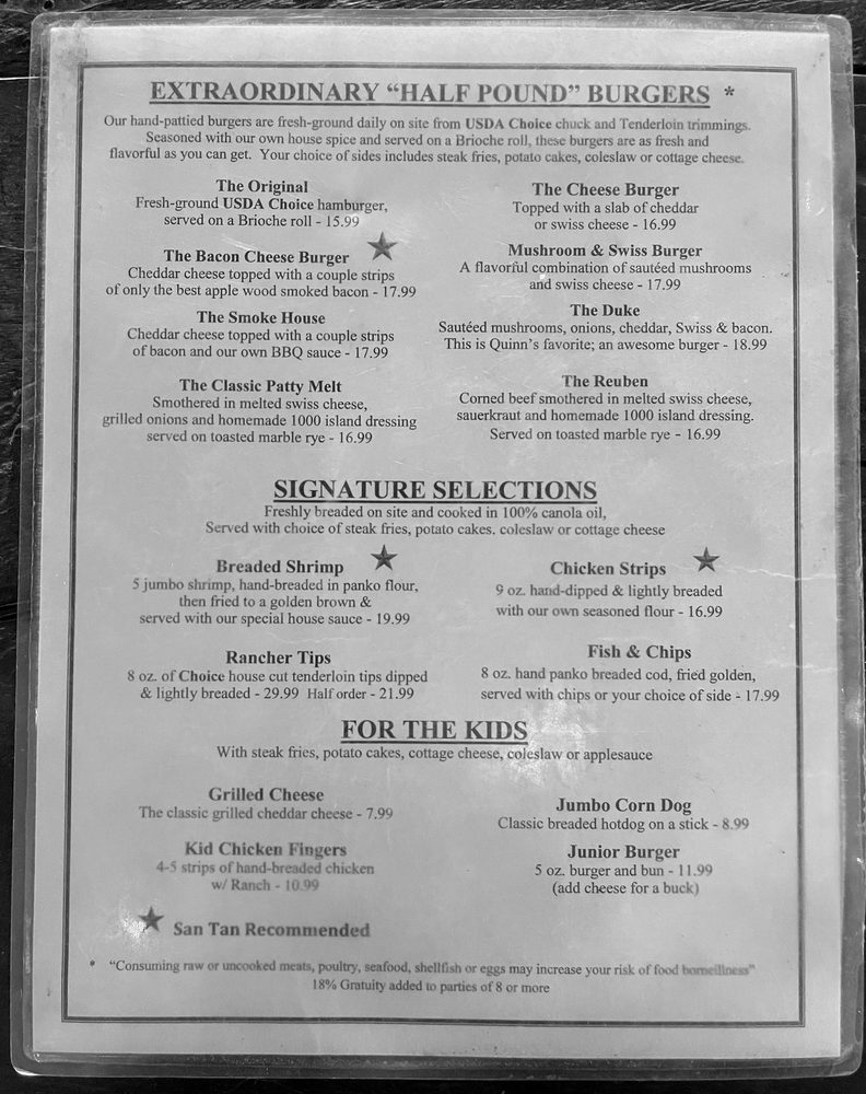 Sauteed mushrooms, onions, cheddar, swiss & bacon. This is Quinn's favorite; an awesome burger